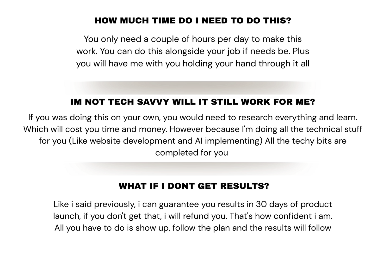 4. Provide evidence of your product being live and promoted (e.g., store URL, marketing activity, TikToks, etc.)Failure to take action or incomplete participation in the program will disqualify you from the guarantee.---### ❌ ExclusionsRefunds will not be granted in cases where:* You change your mind after purchase